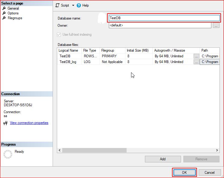 Creating a new database in SQL Server using CREATE DATABASE statement