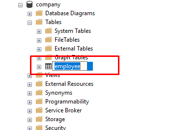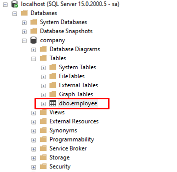 First, create a table named emp in company database. By default the table will be created in thedbo